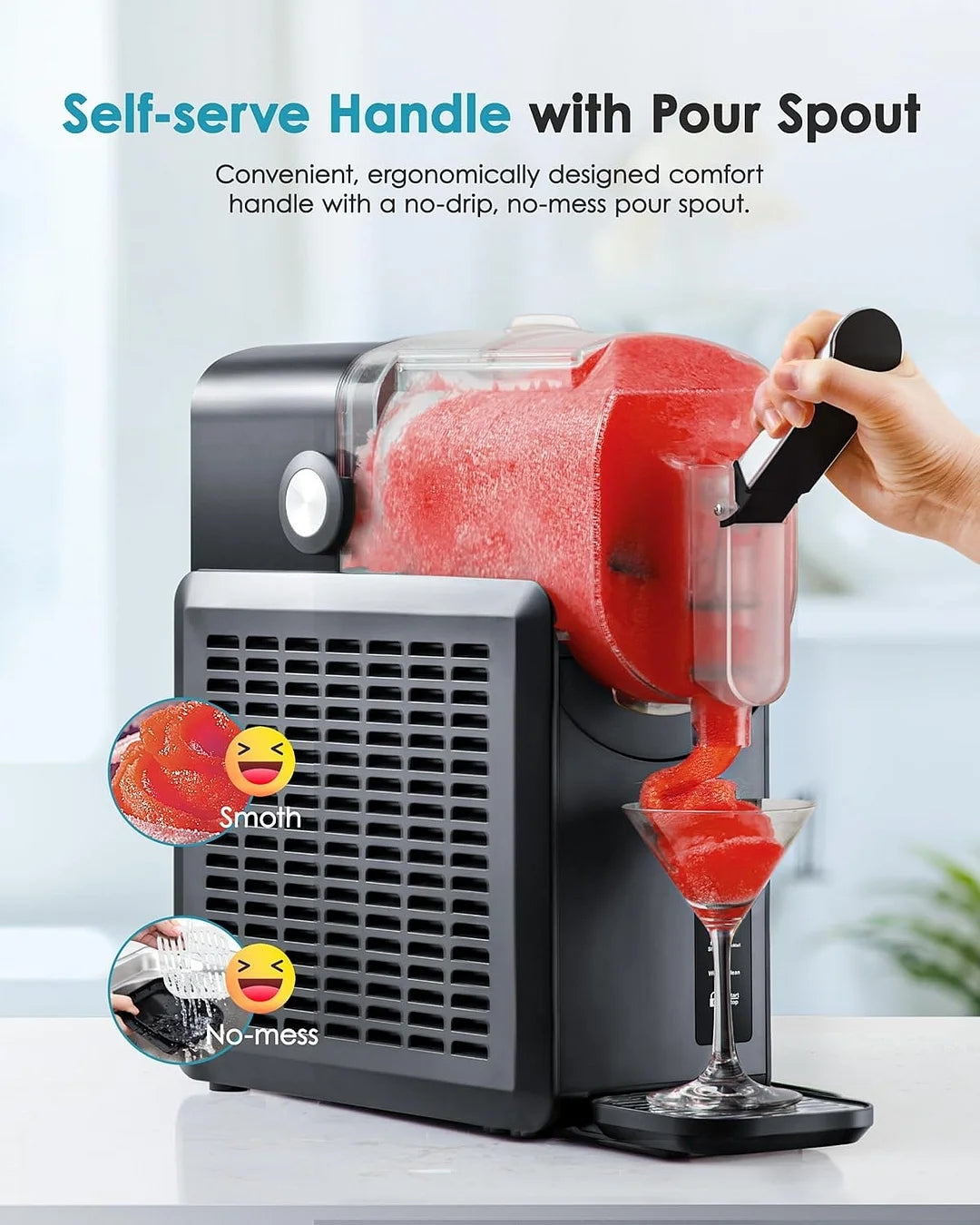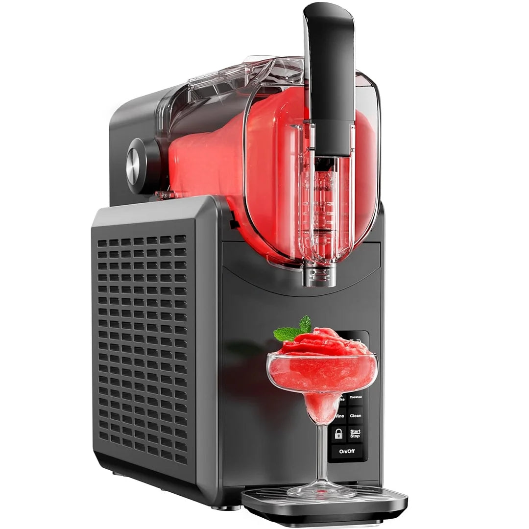 - Easy to Clean & Dishwasher Safe: EUHOMY slushy machine for home features a self-cleaning mode for easy maintenance. For deep cleaning, just unlock the rear handle, remove the barrel and parts, and rinse with water, or place them in the dishwasher. Enjoy hassle-free slushy making. That means the frozen drink maker always primed and ready to whip up more wonderful frozen drinks for you and your family to enjoy.